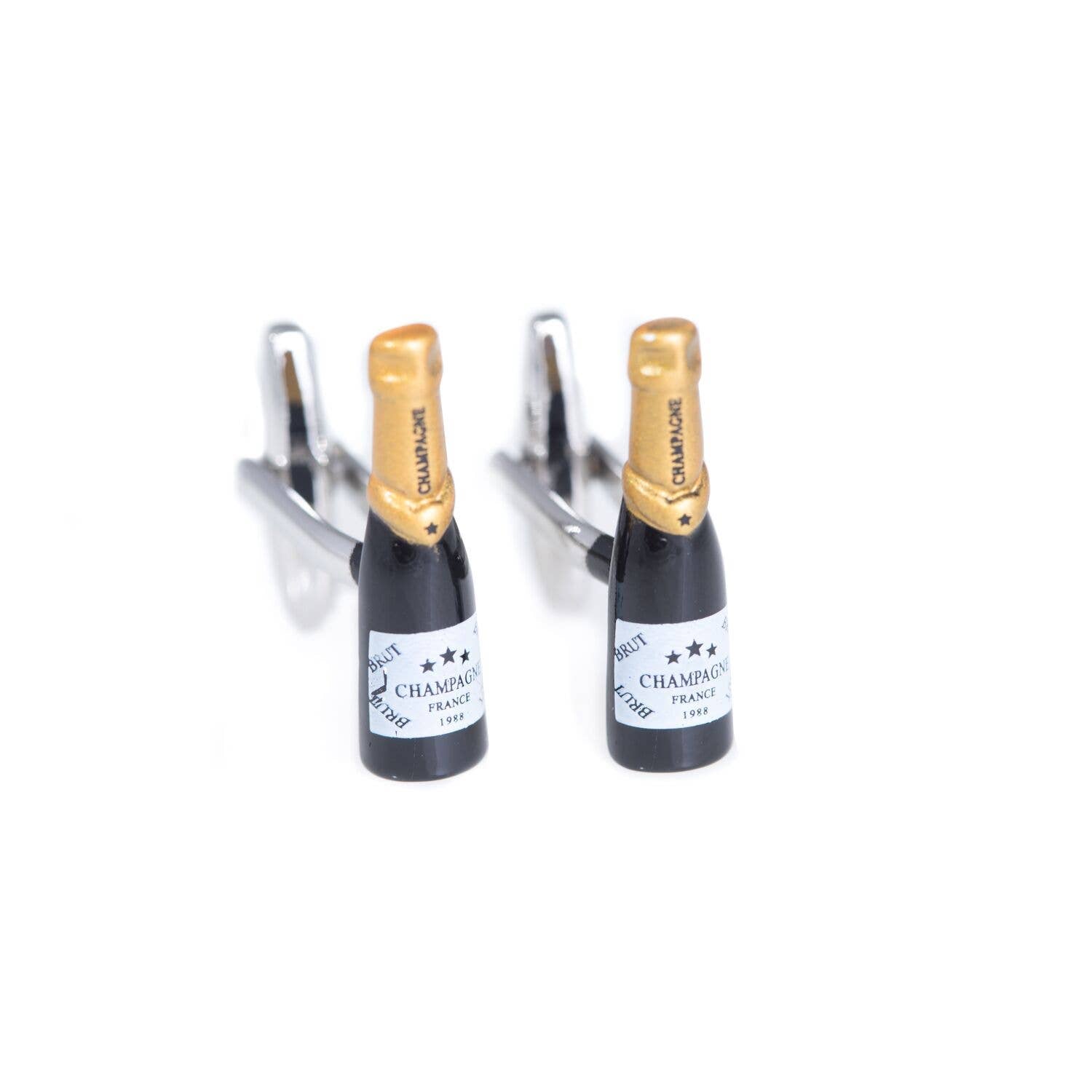 Rhodium Plated Champagne Bottle Cufflinks