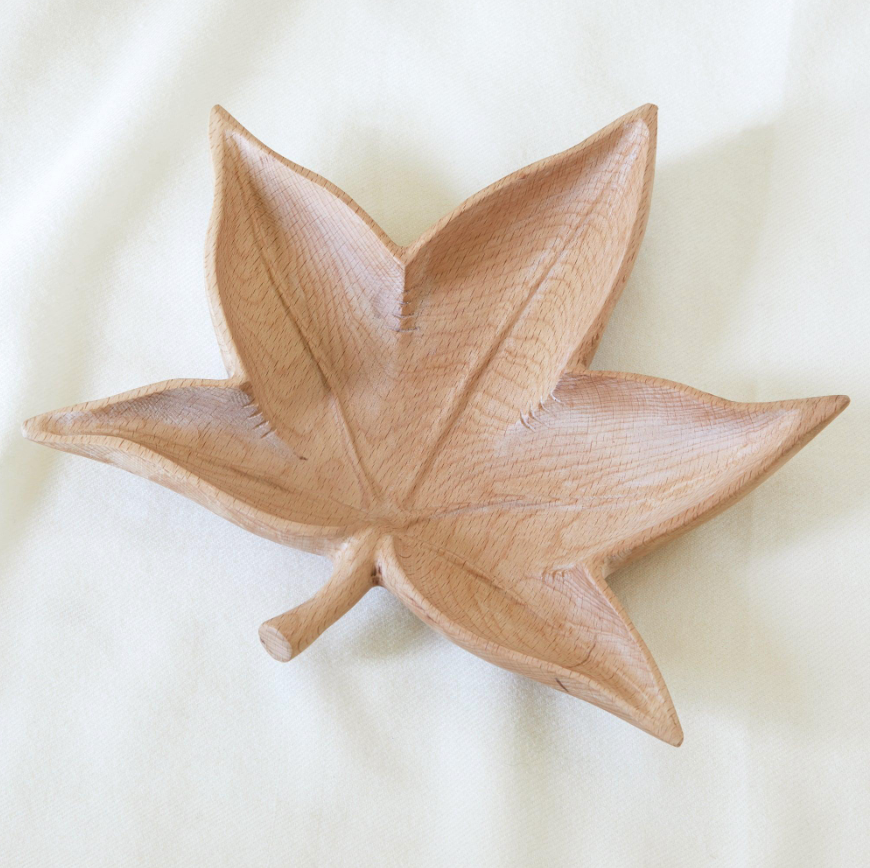 Sugar Gum Carved Leaf Bowl In Beechwood