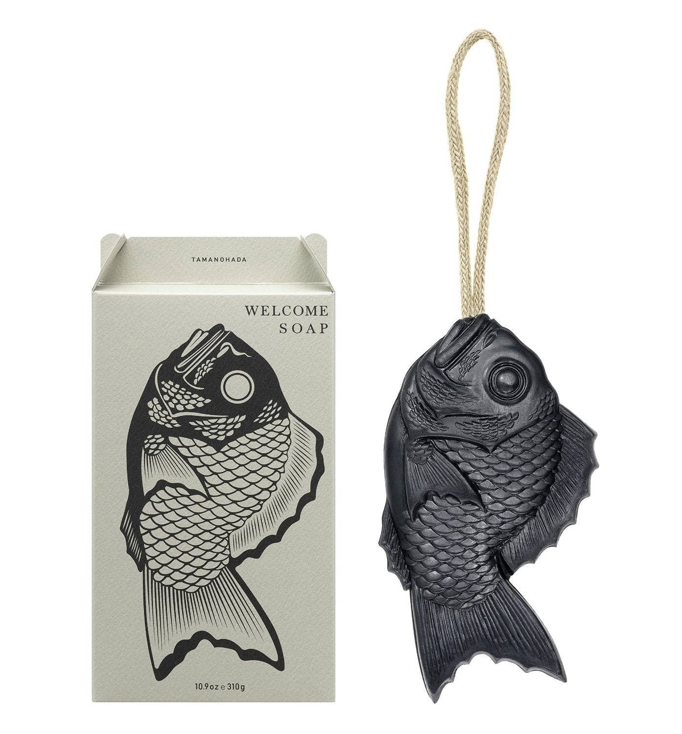 This soap comes in the form of the Japanese celebratory fish, the bream! This beautiful, delicate shape was created using a process based on the wooden mold used to make the Japanese sweet called Rakugan. Tamanohada soaps are made from entirely plant based material, from natural plant oil. This soap series is made to give your skin an extra gentle care, and thus could be used for washing your body and also your face. It's texture is between liquid and milk, leaving a delicate moisturize protection and scent to your skin. Leaving your soap on a small dish will also lightly perfume your bathroom. A beautifully gift boxed "soap on a rope" from Tamanohada Soap Co.