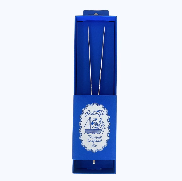 These delicate tongs were born to pluck fish from a tin. Crafted from pro-grade Stainless Steel in Tsubame-Sanjo, Japan, these elegant tongs combine the long tapered profile of Japanese cooking chopsticks with the precision of plating tweezers, making them the perfect utensil to lovingly lift a sardine from a tin of fish and place it atop a fresh baguette.