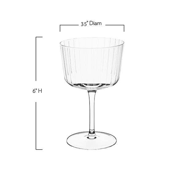 Etched Wine Glass Inspired by nature, beautiful botanical designs are engraved into super thin soda glass. The Sienna glasses have a weightless and timeless elegance. EDITCOPY Details * Imported * Delicate Linear Etching * Material: Glass * Color: Clear * 3.5" Diam x 6.0" H * 12 oz General Care * Dishwasher Safe * Hand Wash Recommended