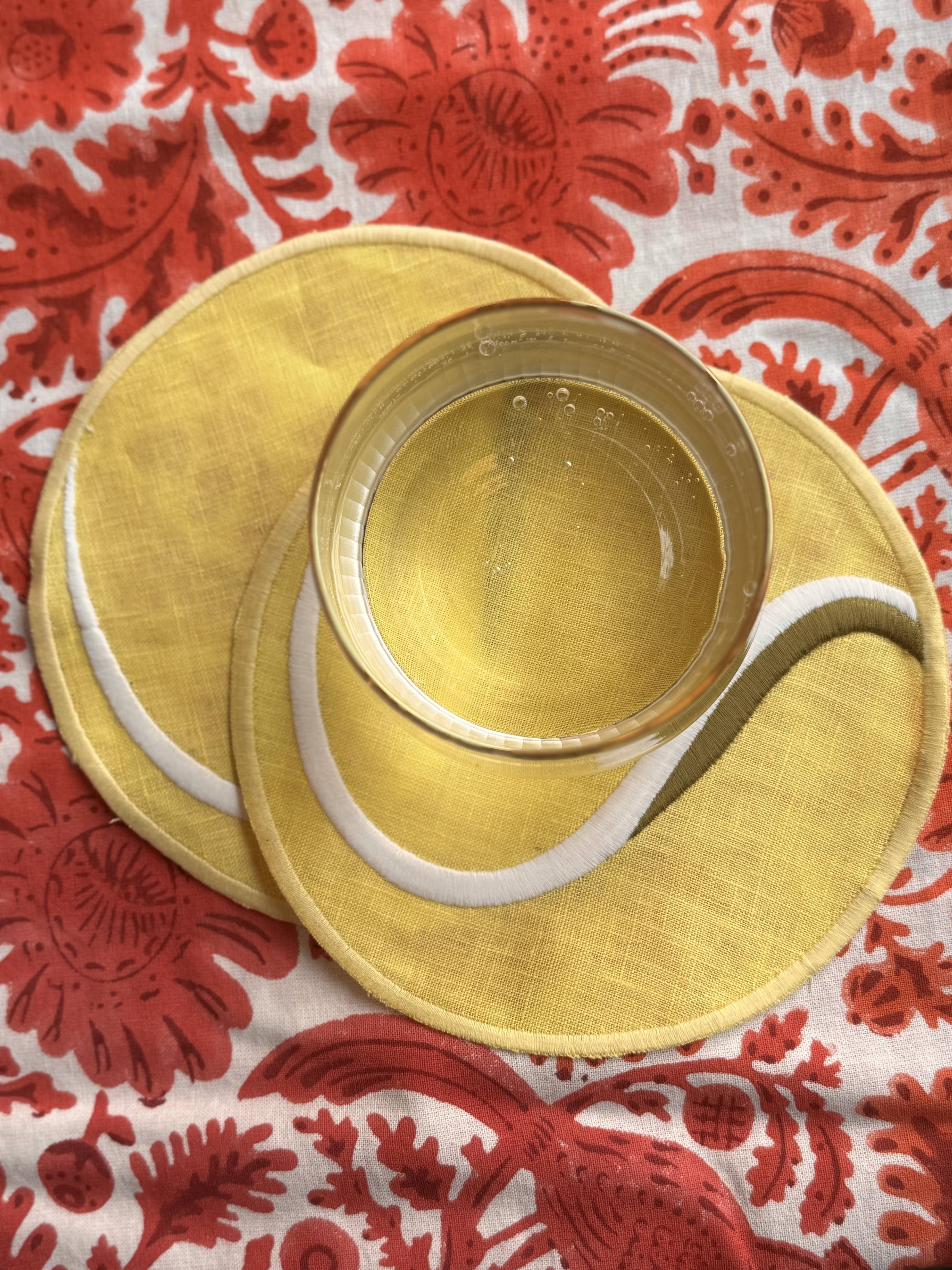 Details 6" x 6". Four to a set. Wash in cold water on a gentle cycle using a mild detergent. Tumble dry low and remove from the dryer as soon as possible to keep from wrinkling. Light ironing if needed.