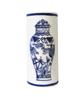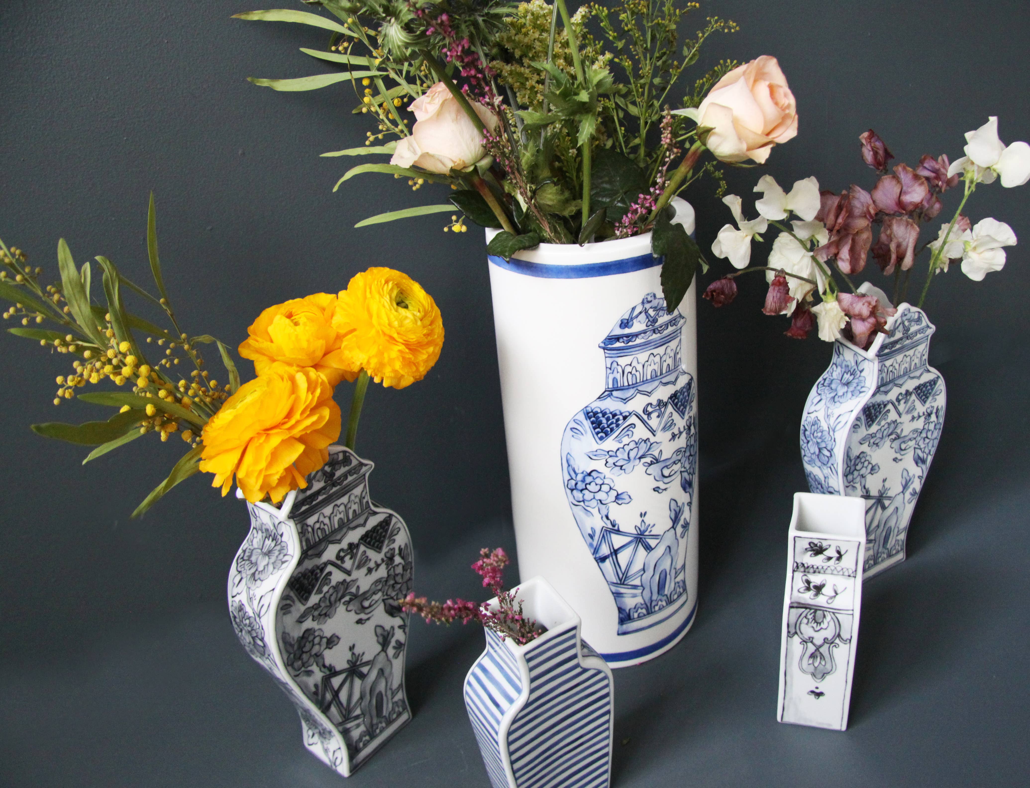 Ideal as a vase for flowers / One vase per box / Fine Bone China with hand decorated decal / Vase: 14 in. height / Well Versed Collection / Design collaboration with Molly Hatch