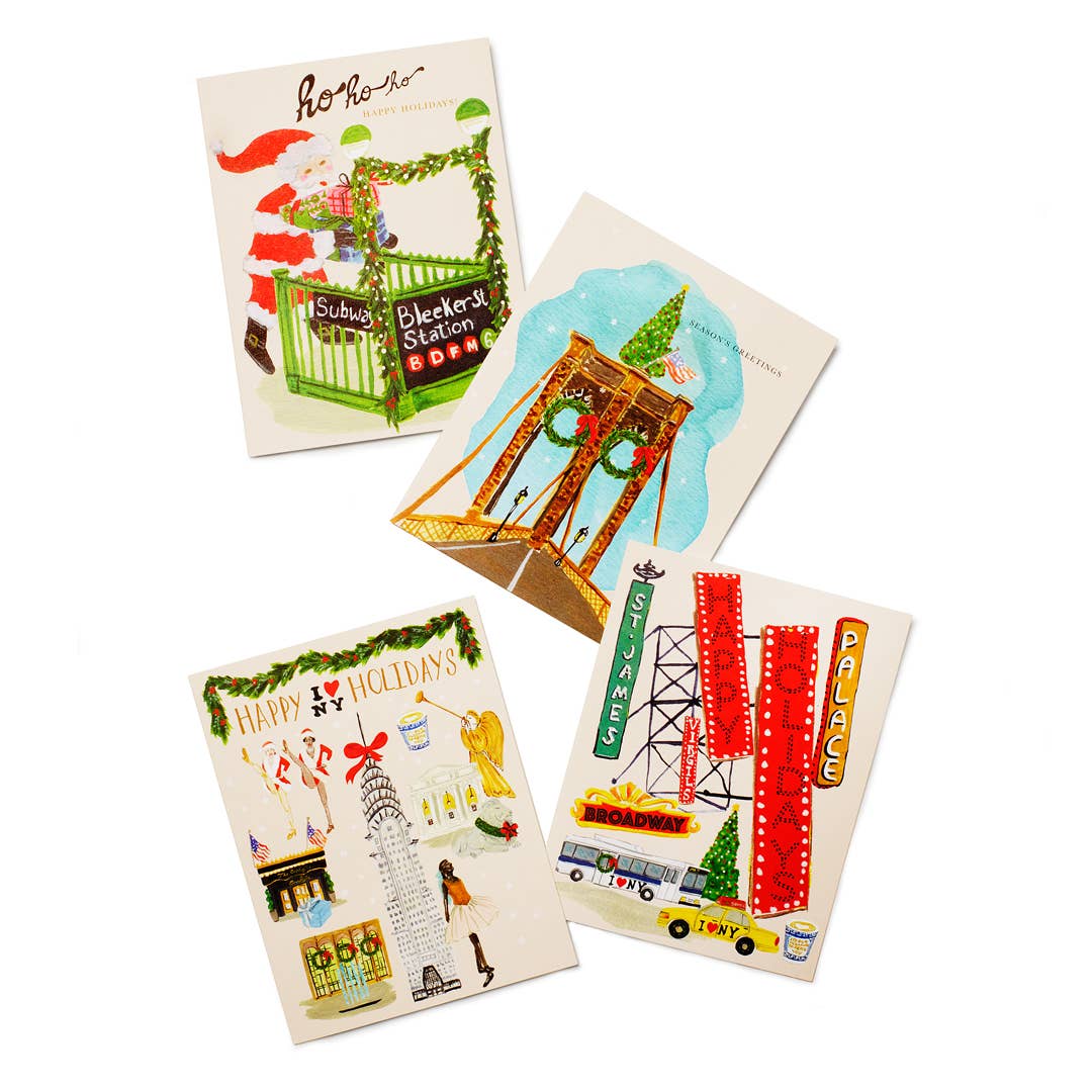 This delightful boxed card set comes with 12 cards, 3 of each design. Designed by Elizabeth Grubaugh for Soap & Paper Factory, each card features an iconic and festive illustration of New York, all dressed up for the holiday season!