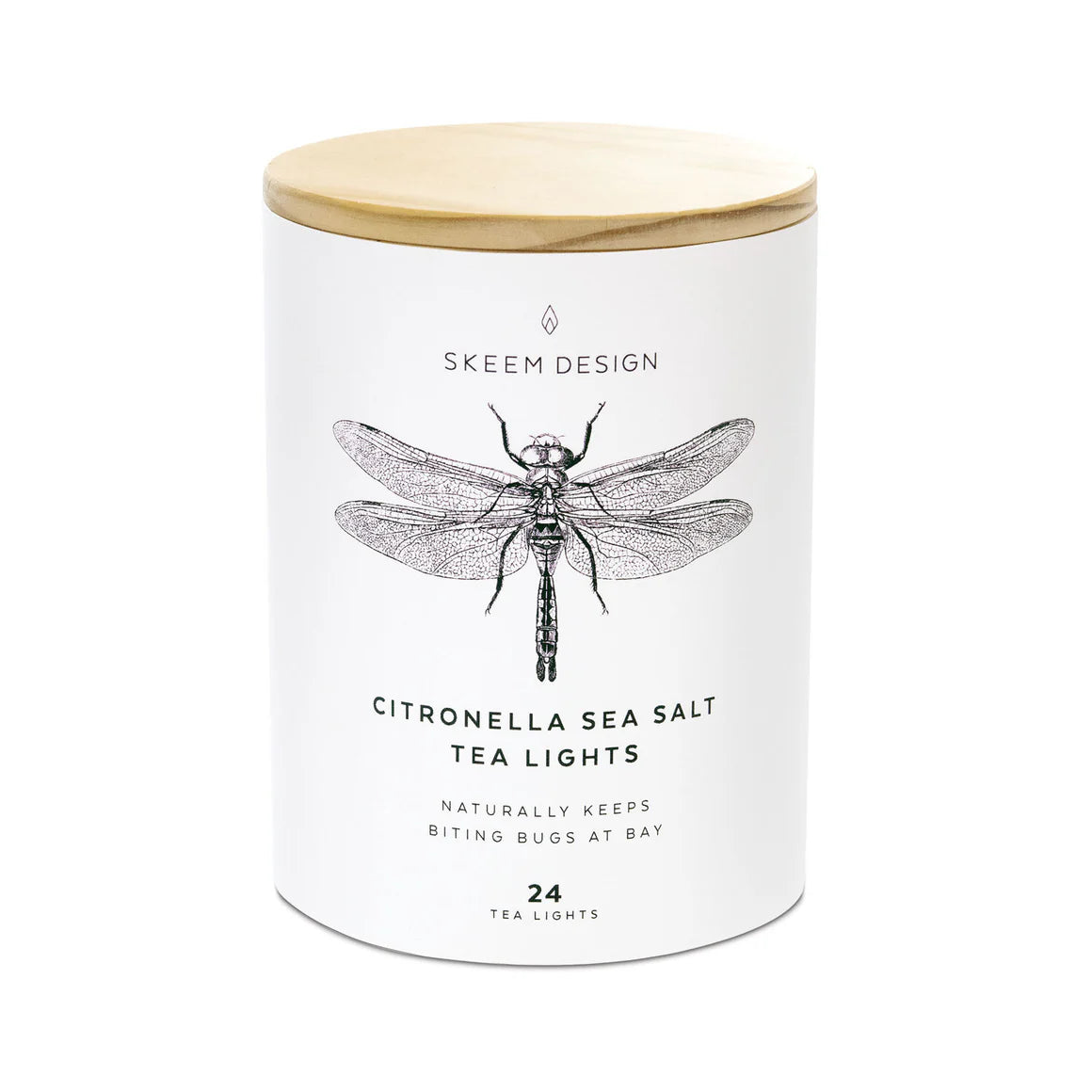 Each set includes 24 scented tea light candles, with each candle offering an impressive four-hour burn time. Whether adorning a long table or scattering them throughout your garden, these tea lights provide both the allure of sparkling candlelight and the practicality of insect repellence. The Citronella Sea Salt scent combines the soothing notes of citronella with the invigorating essence of ocean air, sea salt, and hints of jasmine, creating an atmosphere that is as captivating as it is bug-free.