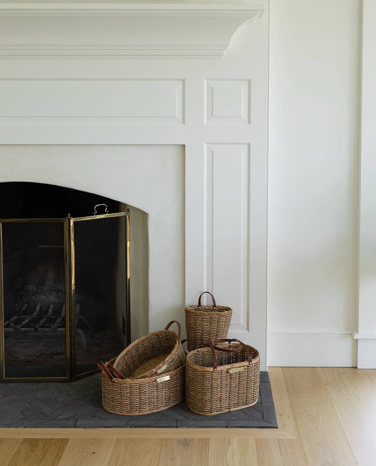 Made to nest inside one another, these baskets are perfect for decorative or practical use. Crafted by a local Amish family, these heirlooms showcase their precise handiwork, attention to detail, and patience. Made by real people, not machines or factories. Made with seagrass roping, wood, willow, and reed. Full Grain Leather Handles Solid Brass Hardware and Nameplate Small - 12.5 x 9.5 x 5.5 inches Large - 16 x 12 x 6 inches Large & Small Sold Separately - Not a Set Handwoven by Amish Makers in Pennsylvania Like all our goods, The Nesting Oval Baskets are proudly made in the USA. This item is made by hand, some variation is expected.