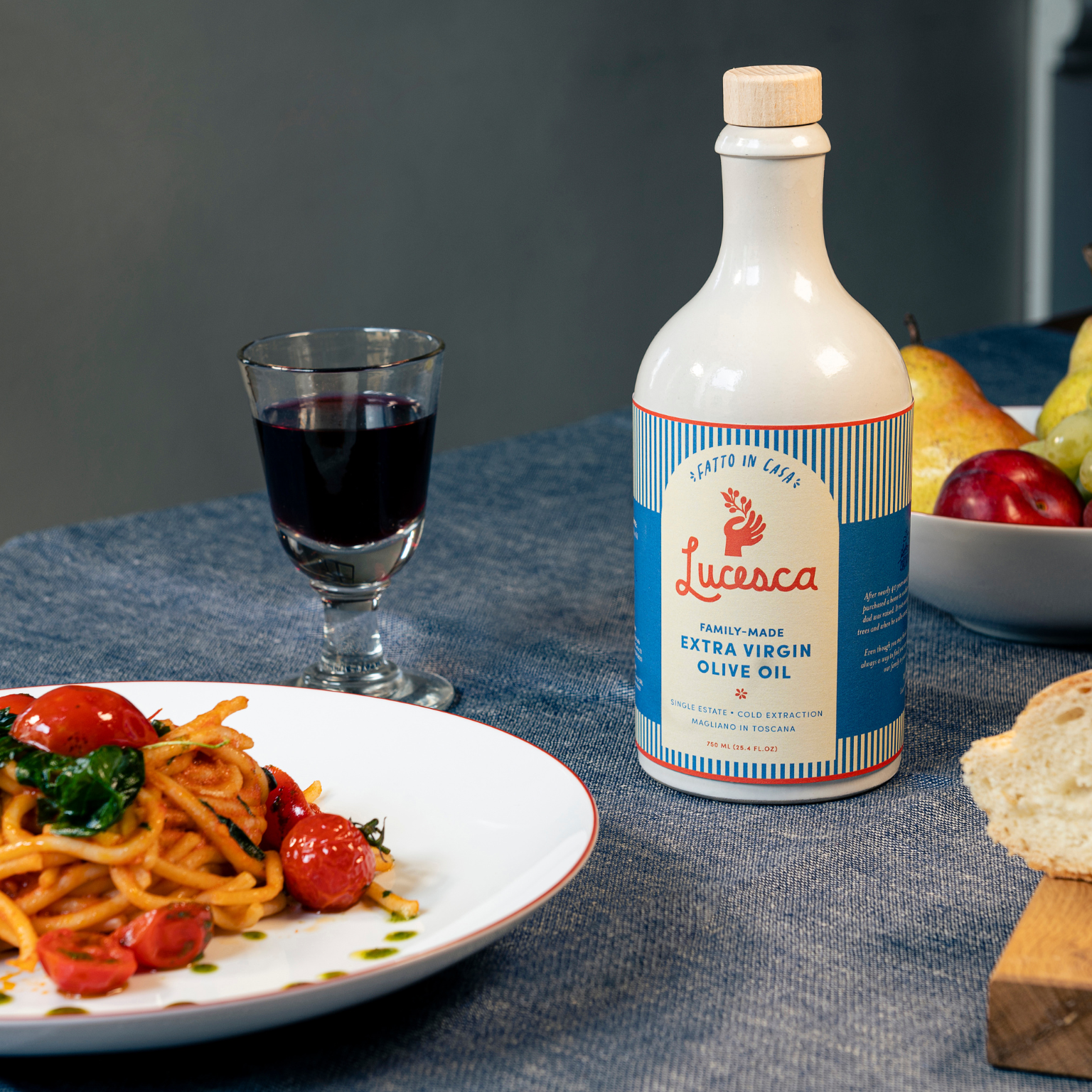 The Ceramic makes a statement on any kitchen counter. With its cork top and glossy white finish, it’s the perfect gift for family, and friends who are family. The Ceramic is our limited edition bottle: we release a smaller amount and change it up slightly every year to commemorate the harvest season.     100% extra virgin olive oil. Cold extracted from Frantoio, Moraiolo, Leccino, and Pendolino olives.  The mix of the four olives gives the oil a rich, buttery flavor with hints of rosemary and lemon. We love it sprinkled, poured, and aren't shy to tell you that we even enjoy it right out of the bottle. You will too. 0.5L / 16.9 oz