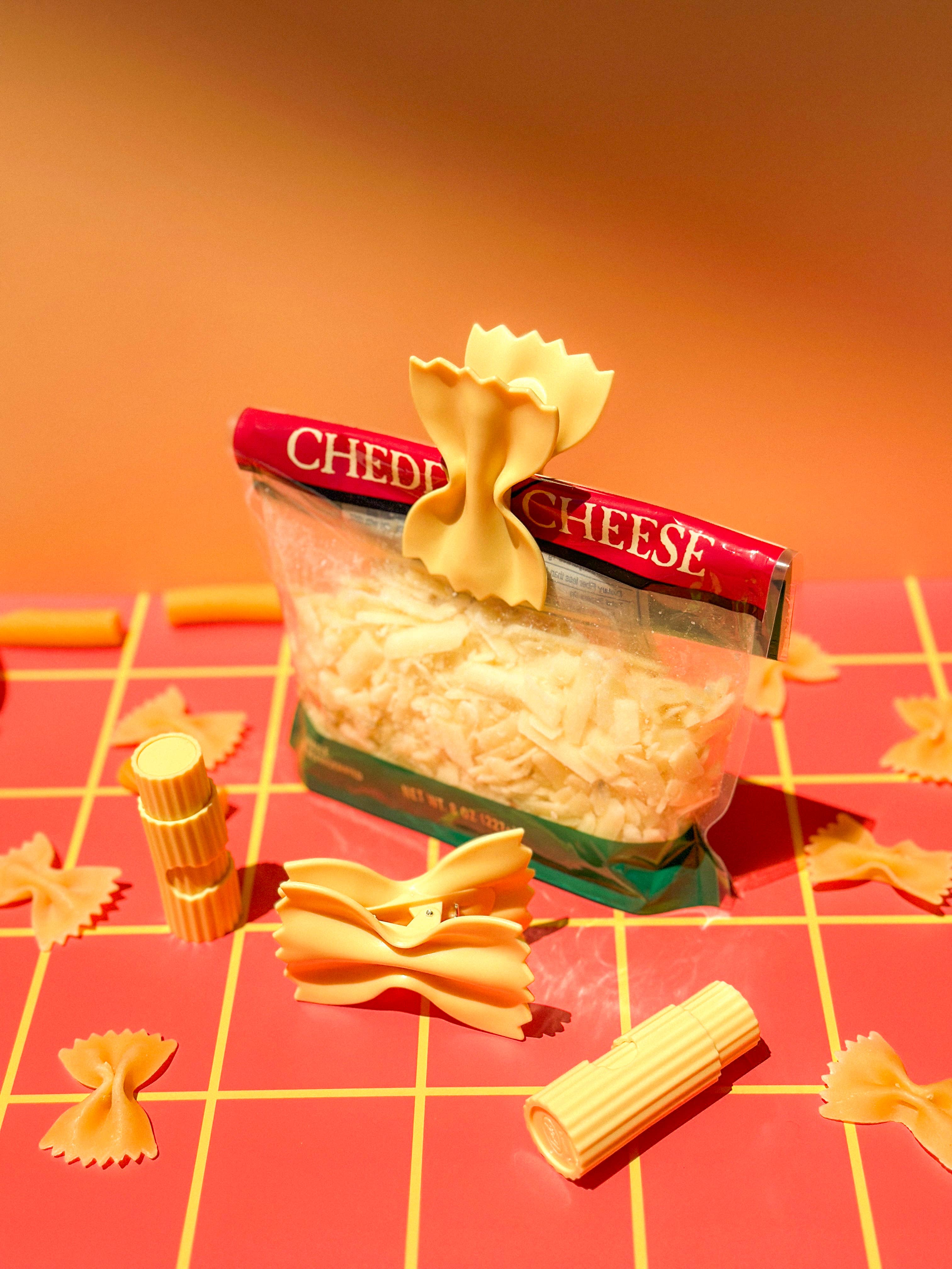 Stale snacks have you boiling over? Fred’s Snackaroni is here to keep your treats from getting al dente! Each set of 4 bag clips includes 2 pasta-inspired styles: the double-sided farfalle is a classic clip, while the rigatoni is a tubular take on a twist-tie. Crafted from durable ABS plastic with reliable stainless steel springs and packed on a peggable backer card.