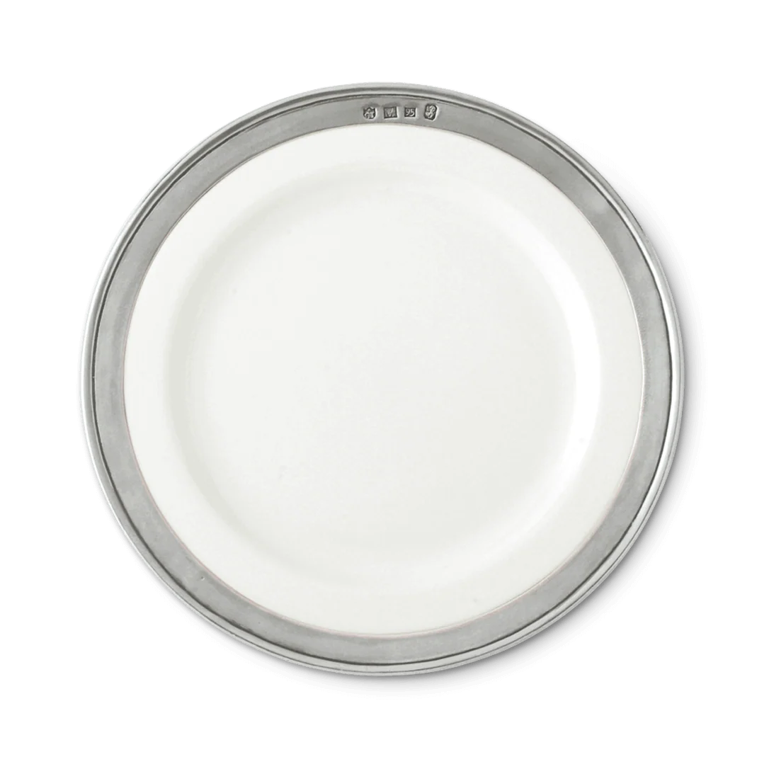 The Convivio dinnerware collection is meant to showcase, but not upstage, your culinary creations. Each salad plate is individually made by hand, with a ceramic body and our iconic pewter rim that’s stamped with hallmarks representing our workshop, our company, the tin content of our alloy and the city in Italy where MATCH is made.