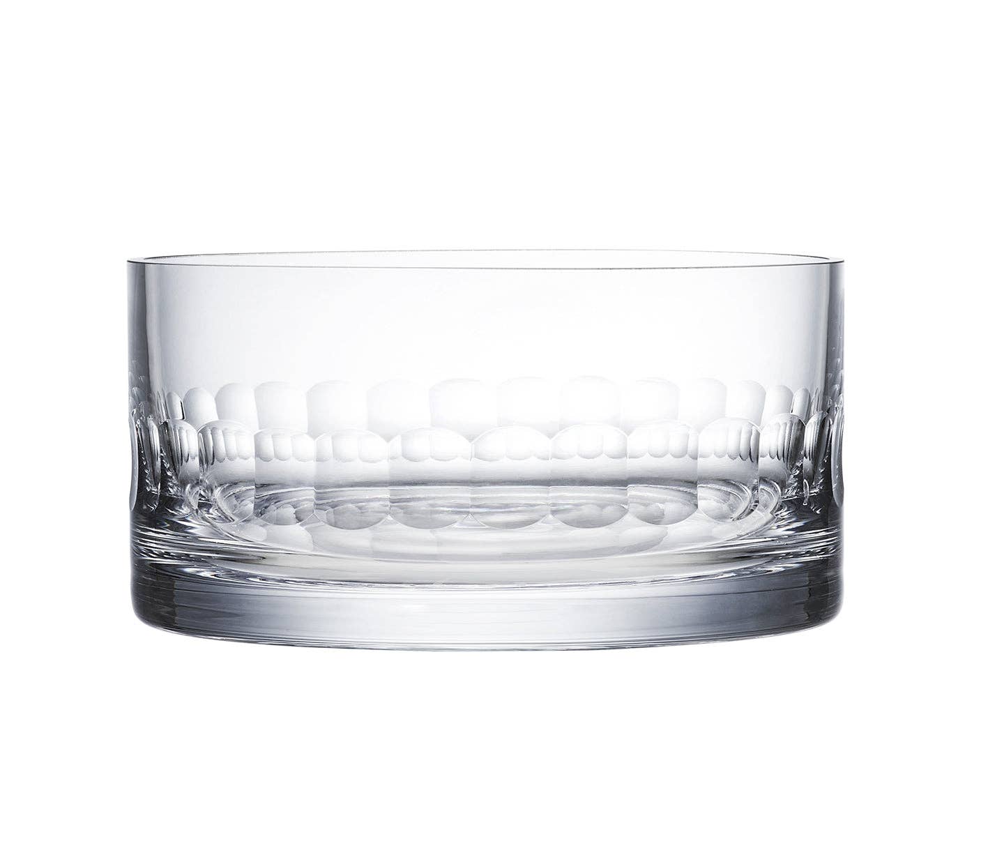 A band of hand-cut connecting ovals. Each ice bucket has been hand-blown and hand-decorated. Our ice buckets are made from fine lead-free crystal. All of our glassware is dishwasher safe. Dimensions: * 7 cm tall; 14 cm wide; capacity: 800 ml. * 2.75" tall; 5.5" wide; capacity: 27 fl oz.