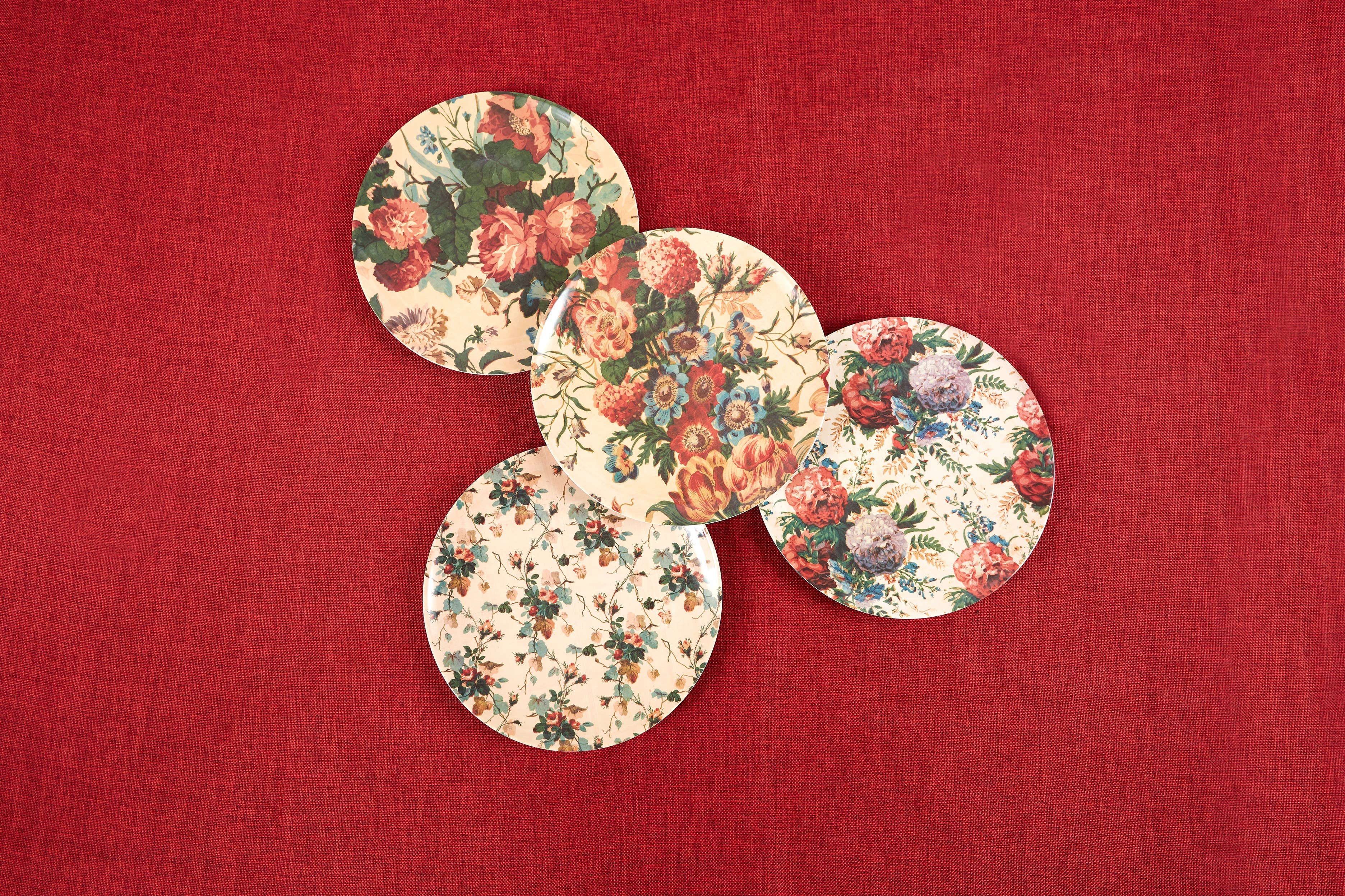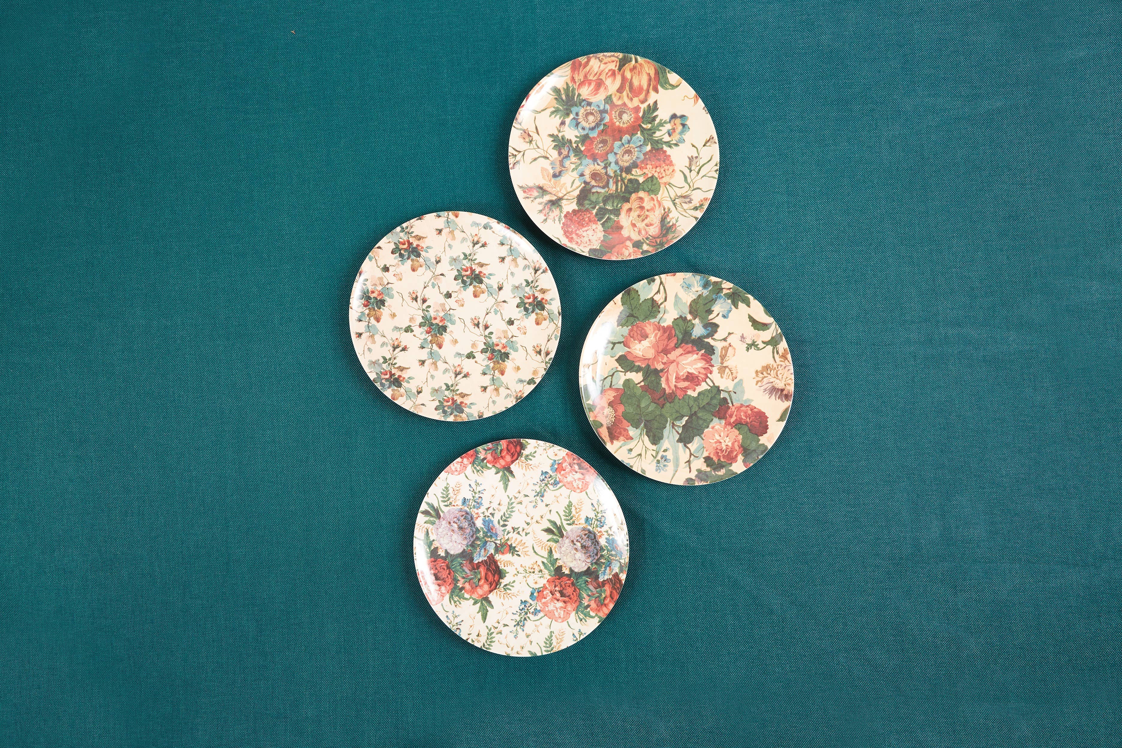 Our English Garden collection is inspired by the lived in comfort and faded grandeur of the classic English Country house. Taking inspiration from antique fabrics and wallpapers, we have reimagined classic cotton chintz patterns into modern, durable tableware. BPA Free Melamine Dishwasher Safe Do Not Microwave Indoor/Outdoor Use Each Plate measures 9" Salad/Dessert size