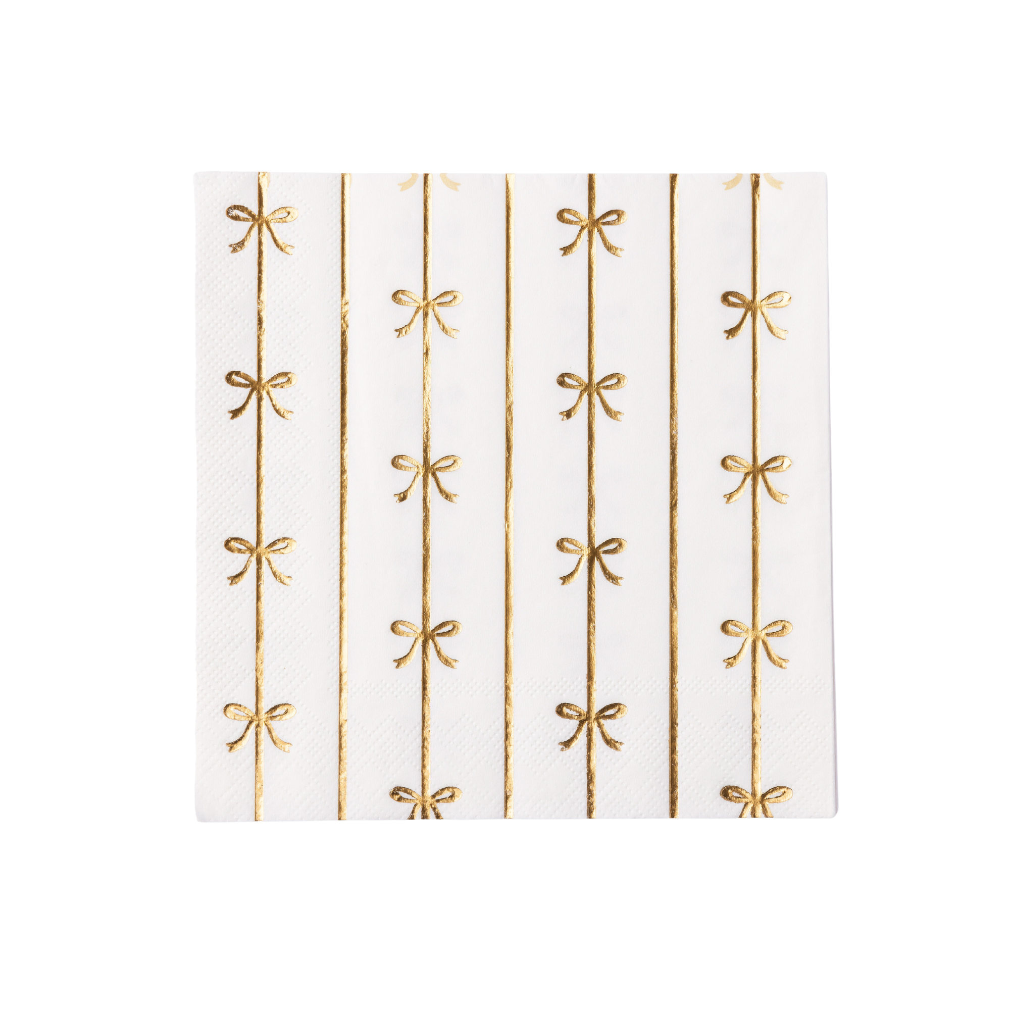 Add a touch of elegance to your table setting with our Gold Signature Bow Large Napkins, part of the Bonjour Fête Signature Line. These exquisite paper napkins feature delicate bows for a sophisticated touch. Perfect for any occasion, from birthdays to holiday celebrations, these dinner napkins elevate the ambiance and add a touch of luxury.