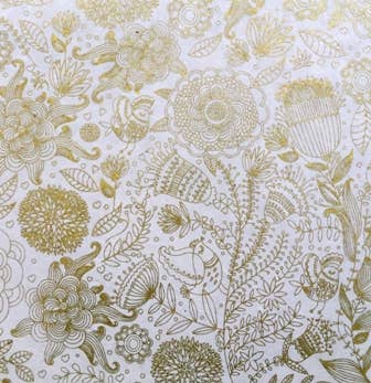 Folkloric Florals Wrapping Paper Sheet, Gold on White