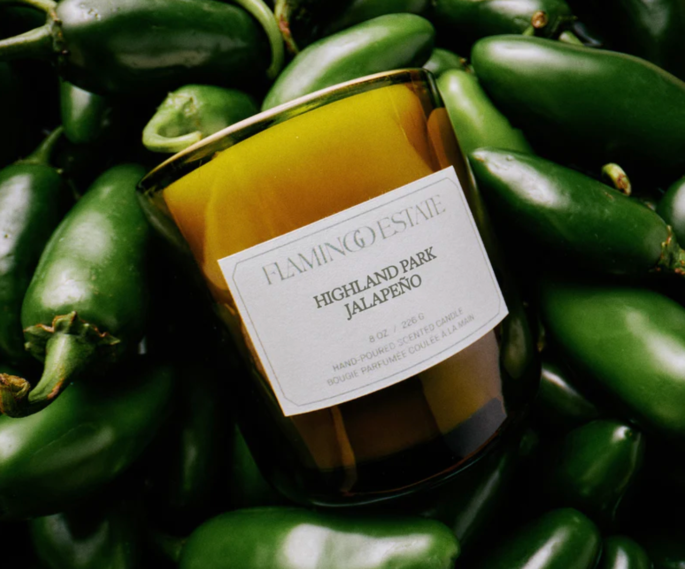 We made a candle that speaks to the buzzing energy of Los Angeles: the city with spice in its veins and a kick in the air. It’s a siren song for thrill-seekers and pleasure-chasers who are willing to risk it all. It’s all things wild and brisk, tingling the nose with a sharp bite, reaching the roof of the mouth, lingering deep with glowing neon green. Highland Park Jalapeño is a bold olfactory ode to our home. It grinds together fresh Coriander Seeds, sun-warmed Thyme, resinous green Galbanum, and ripe Jalapeños bursting with bite.
