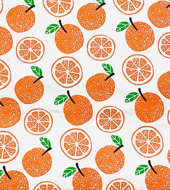 Orange SlicesWrapping Paper Sheet, Orange Green on Cream