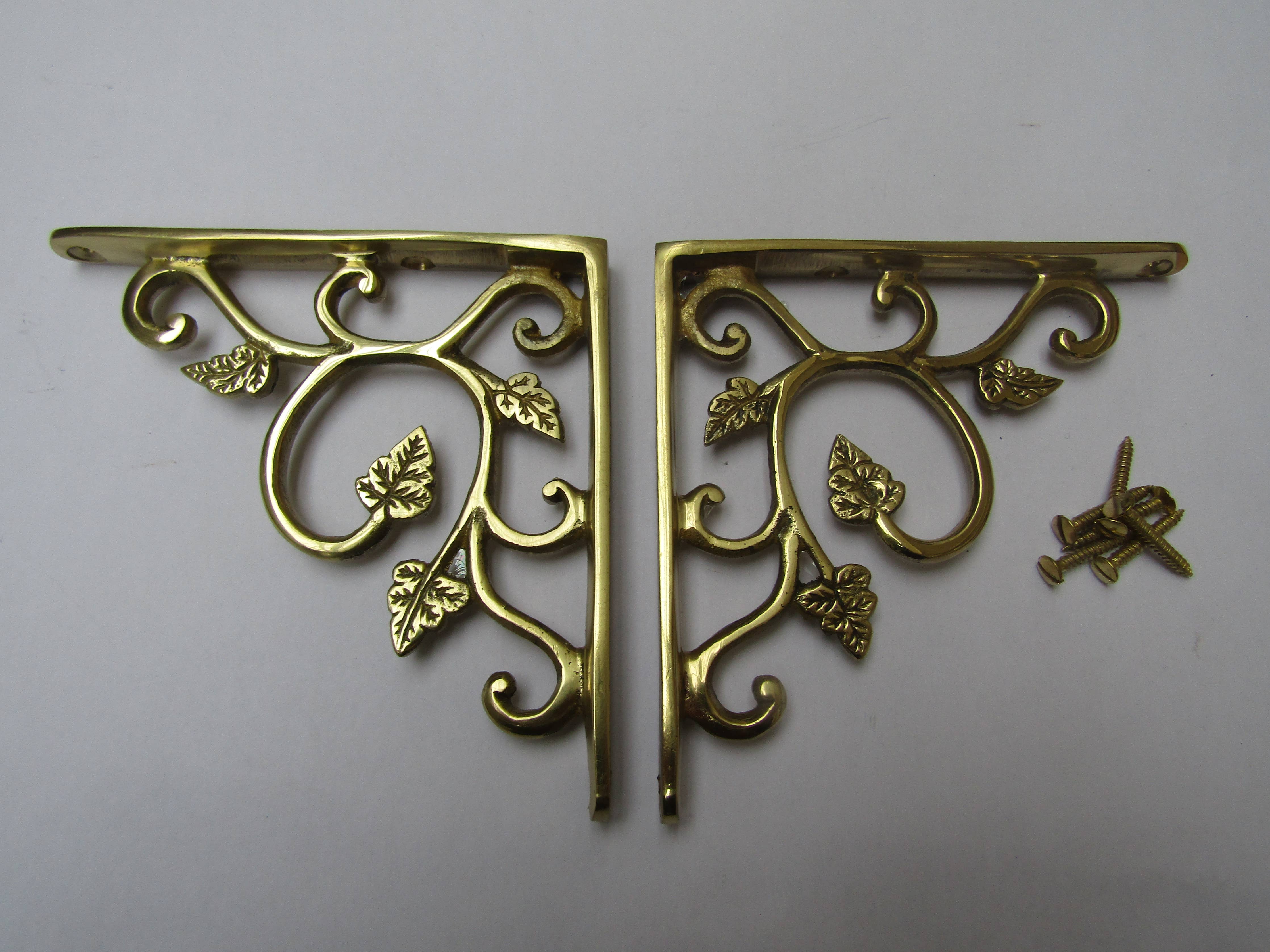 Pair Of Small Leaf Shelf Brackets Polished Brass