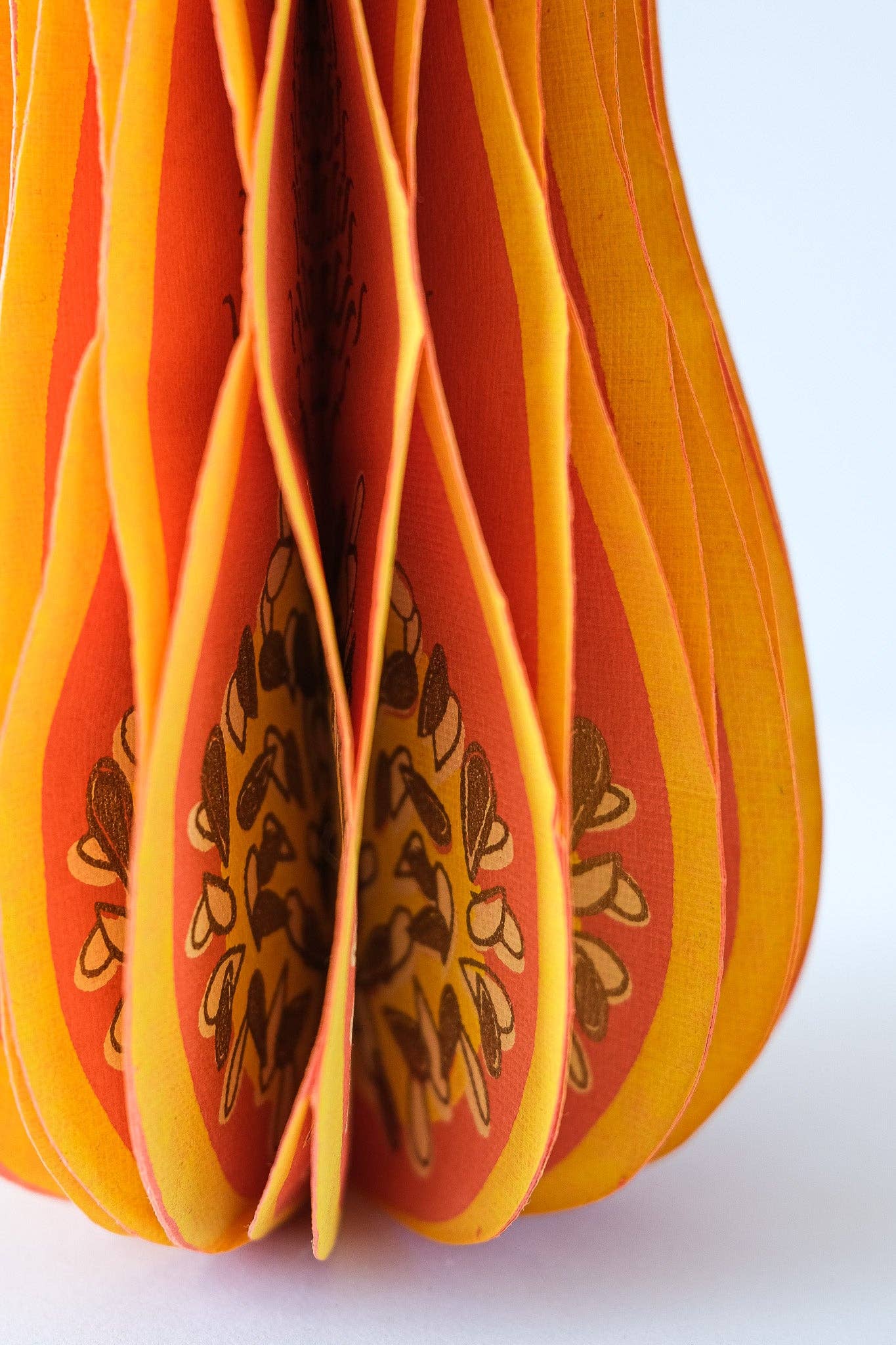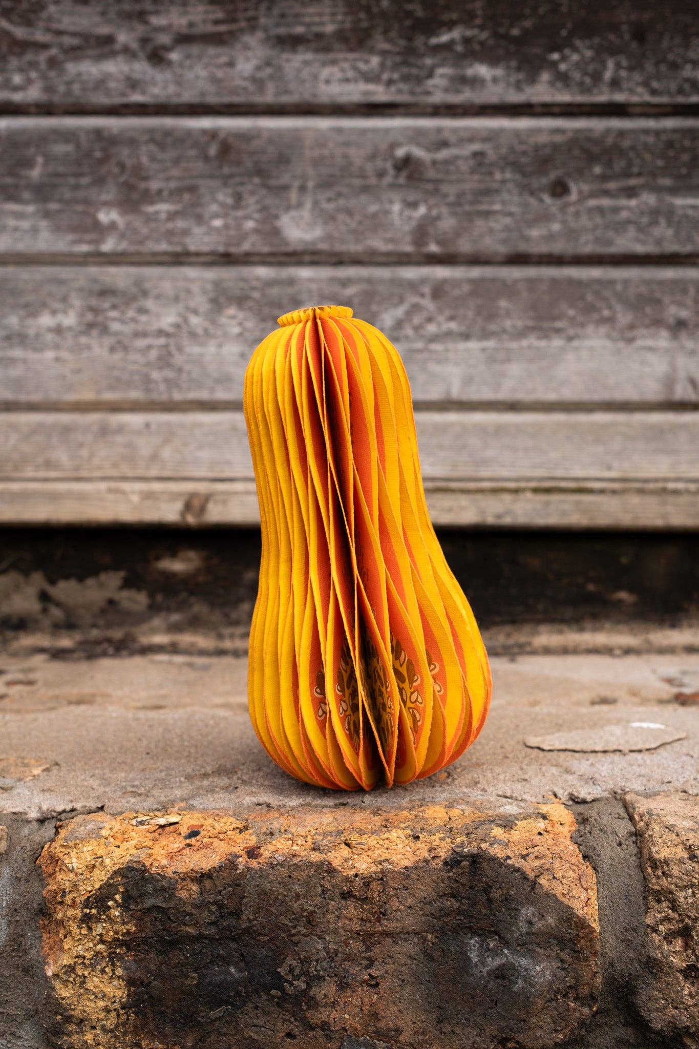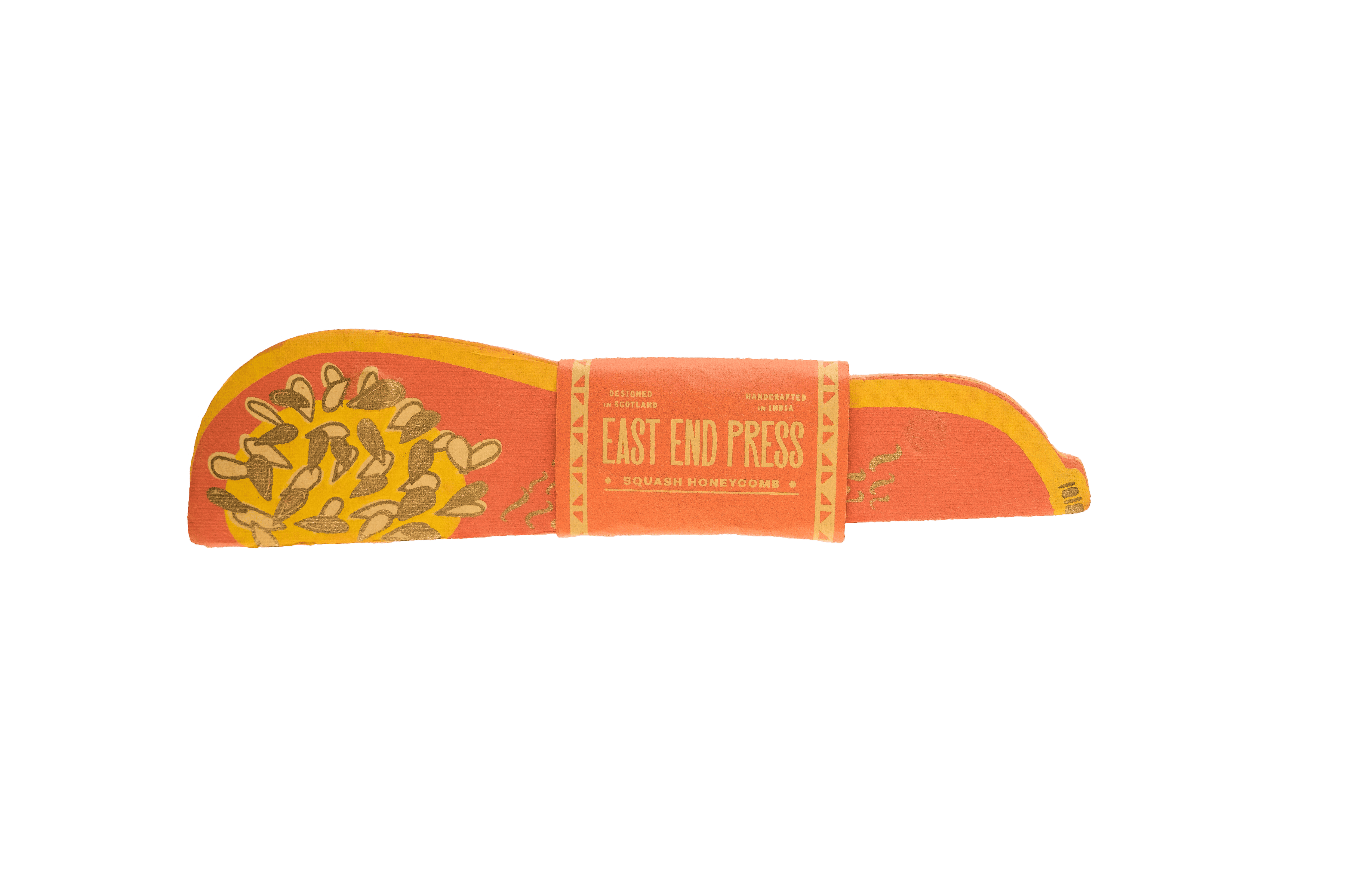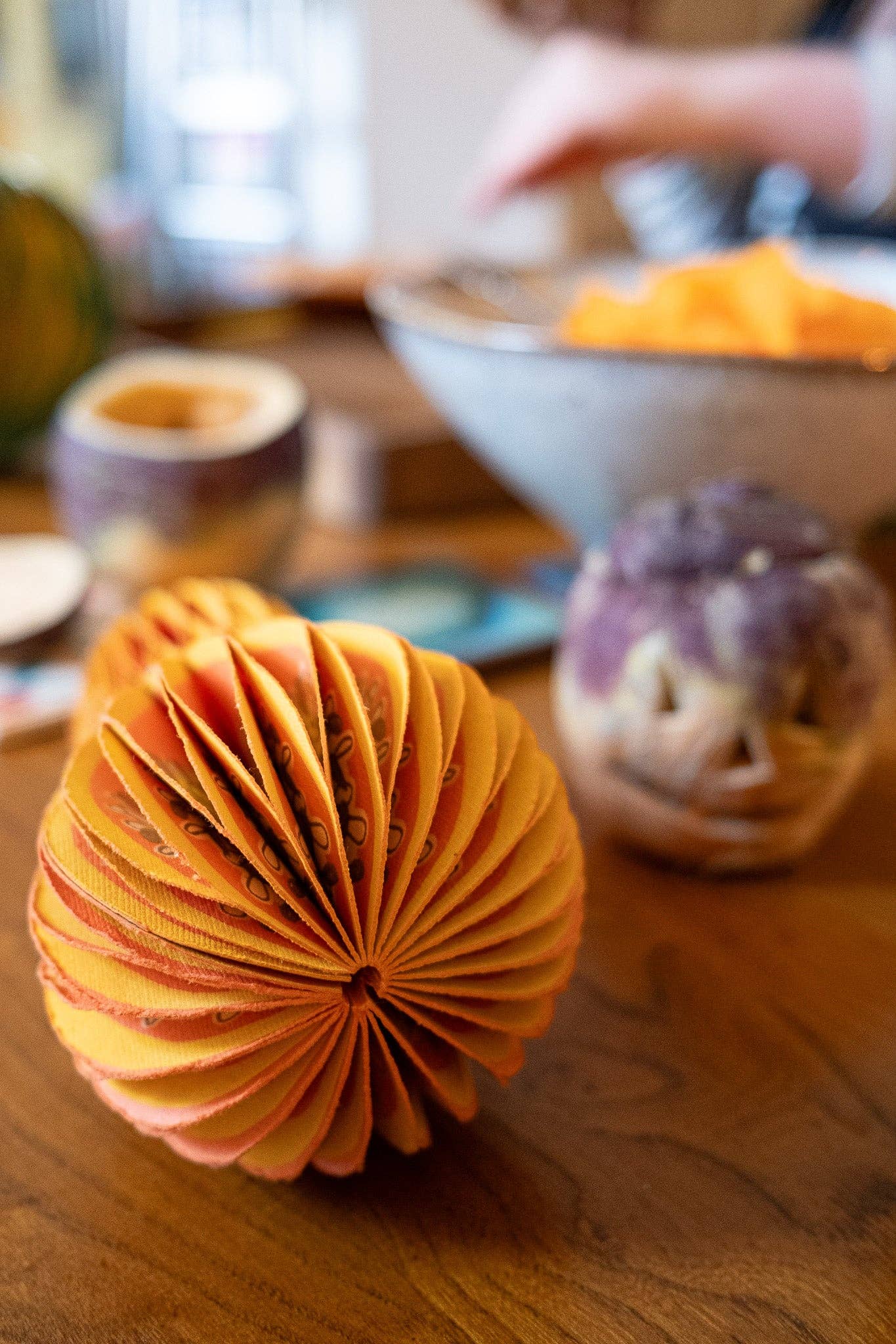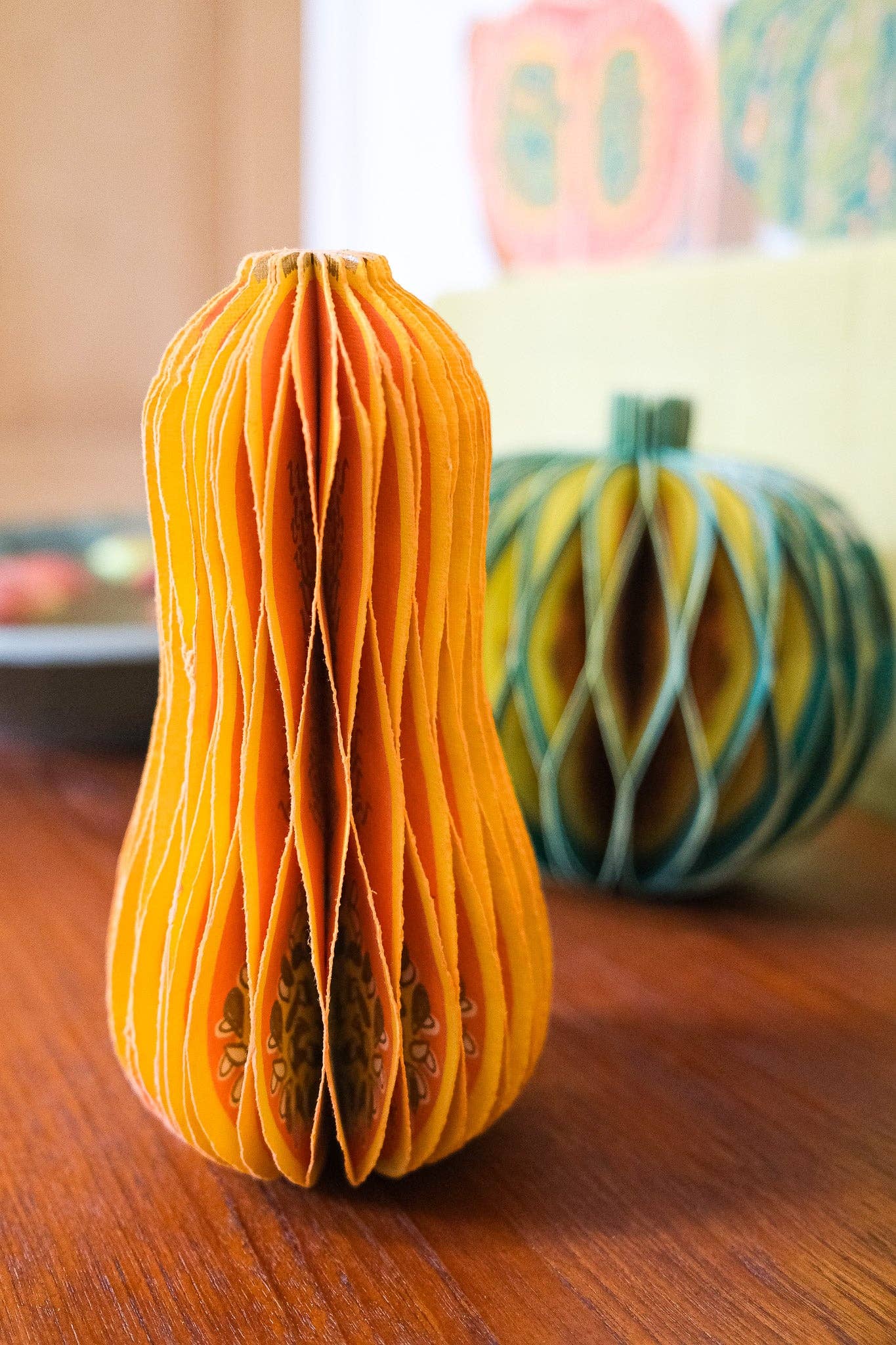 Composed of intricate layers of recycled cotton paper, each decoration unfolds to reveal a three-dimensional squash honeycomb.
