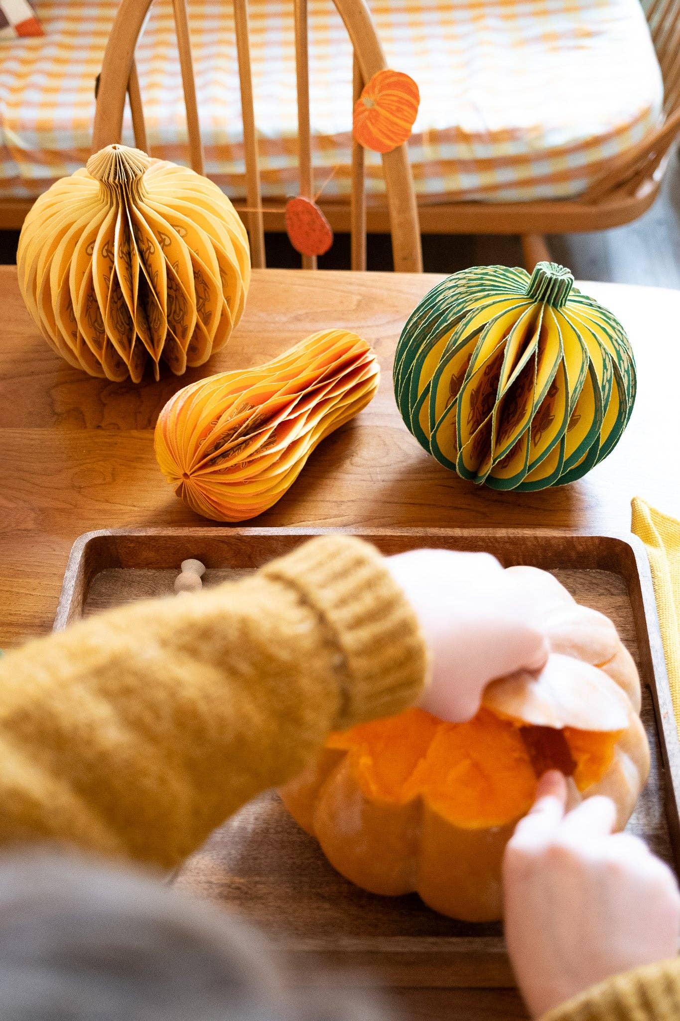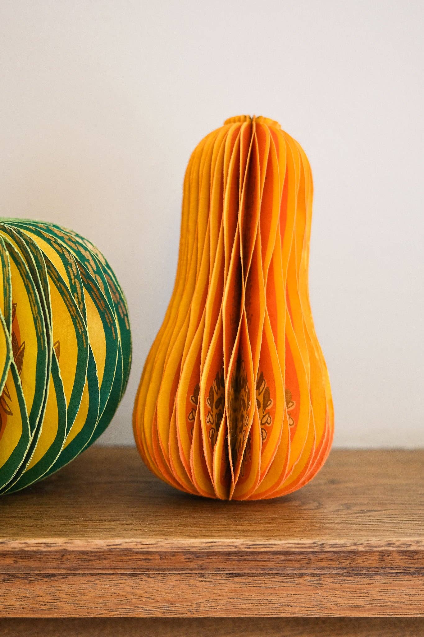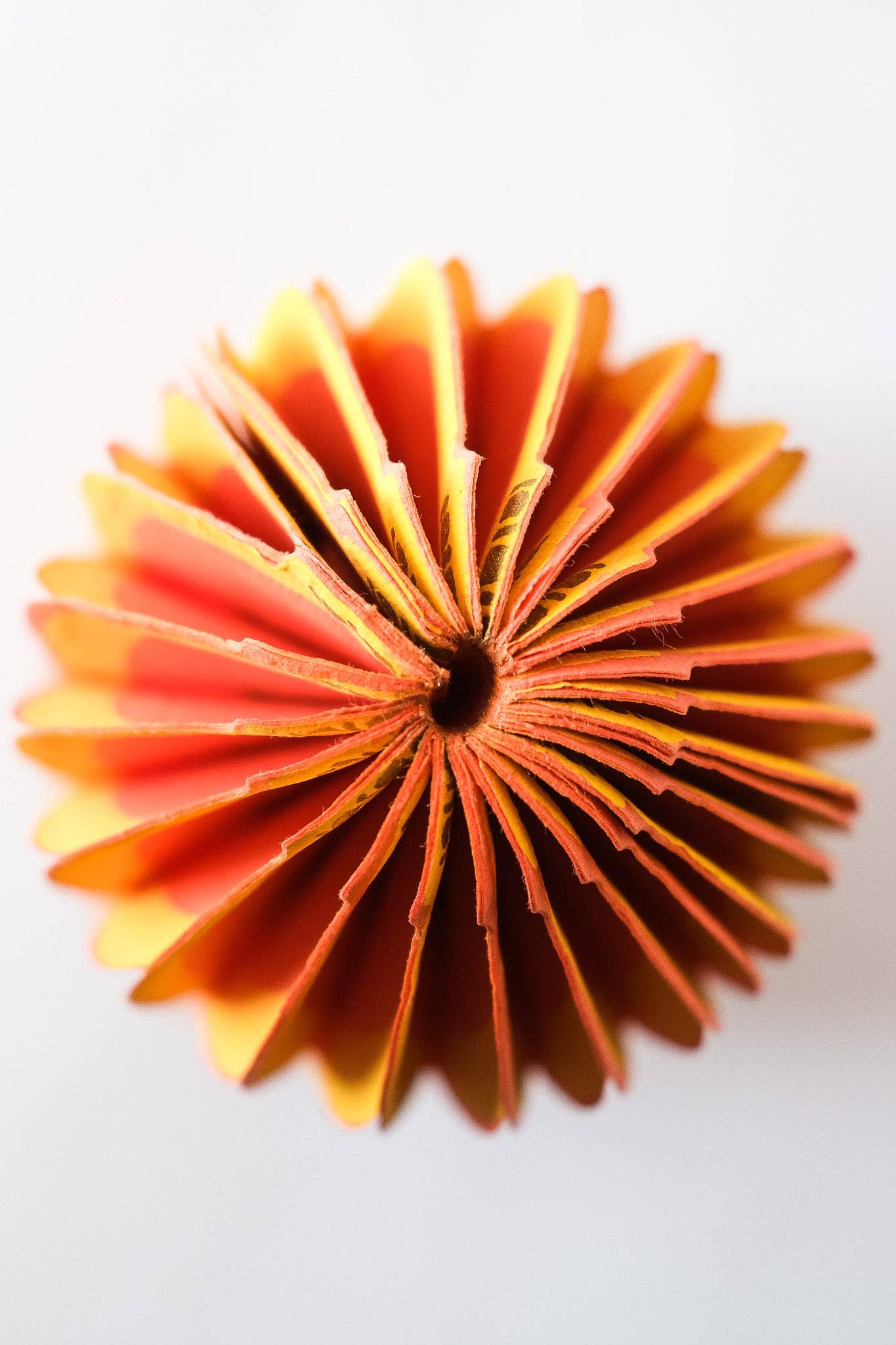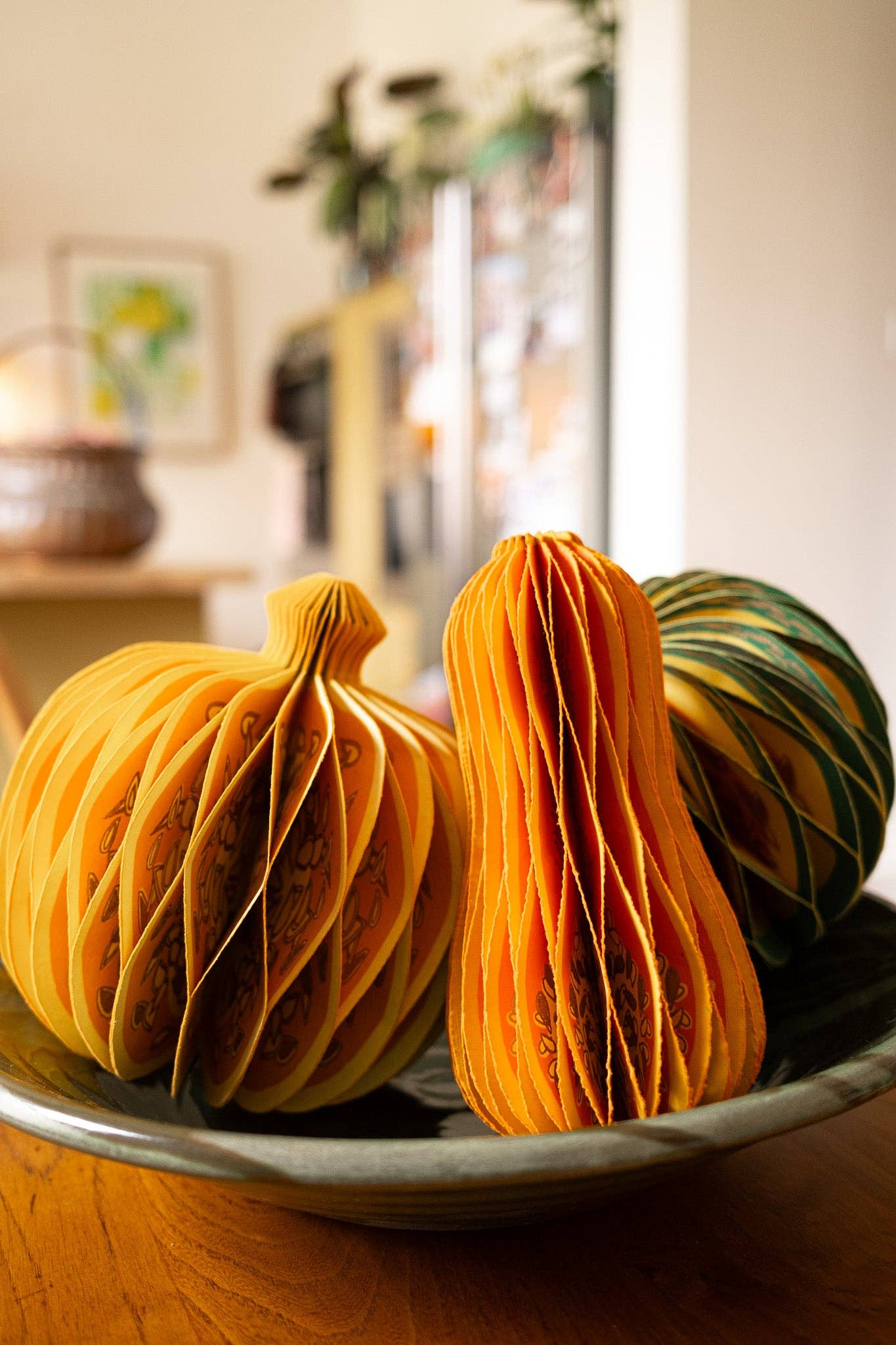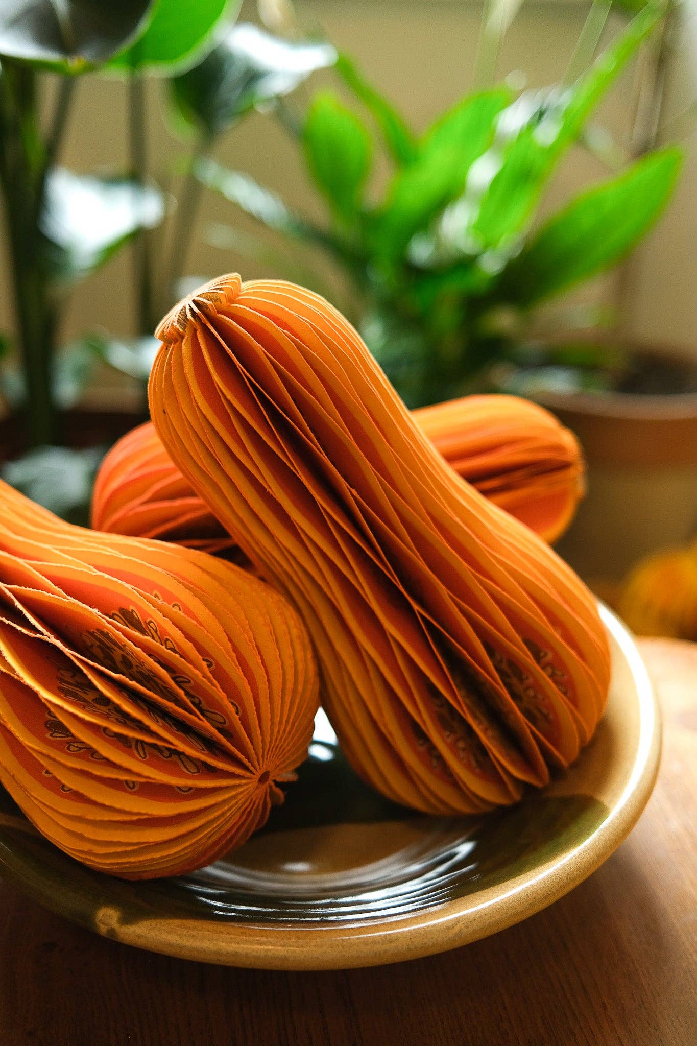 Composed of intricate layers of recycled cotton paper, each decoration unfolds to reveal a three-dimensional squash honeycomb.