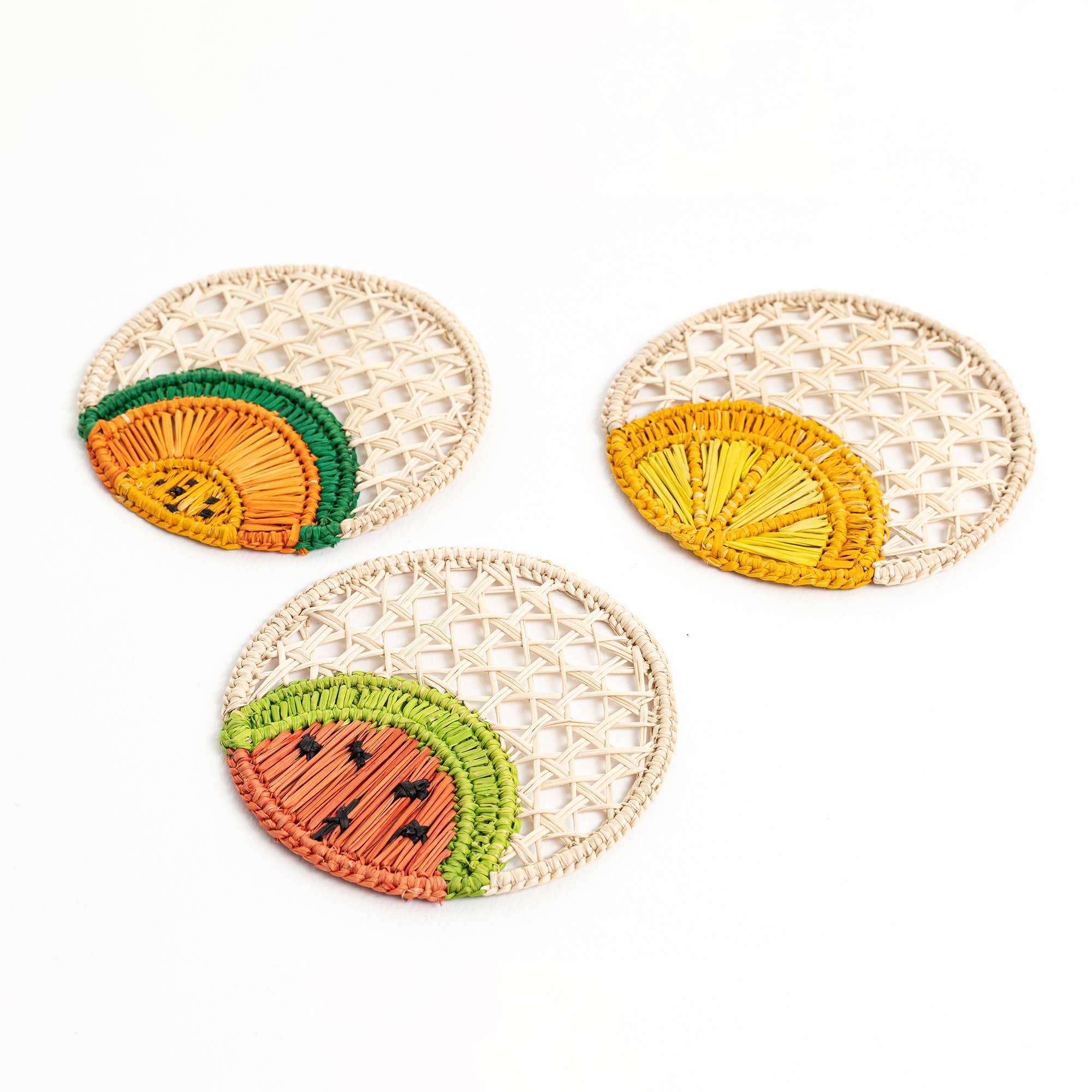 These stunning woven coasters are made by artisans from Usiacurí, a vibrant town on the Caribbean coast of Colombia. Using a traditional technique that has been passed down through generations, the process begins by shaping a wireframe, over which they weave intricate patterns with Iraca palm. The result is an exceptionally detailed work of art that will elevate any table setting.